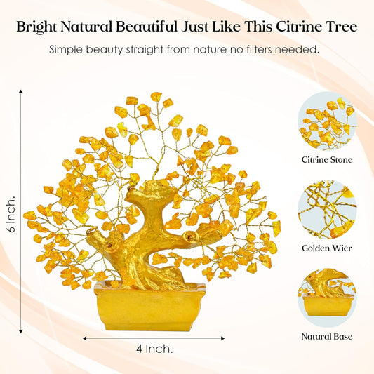 Handmade Feng Shui Golden Citrine Crystal Money Tree for Wealth & Positivity, 6x4 inch | Good Luck Home Decor Gift