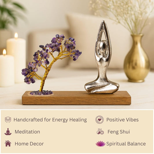 Handcrafted Namaste Amethyst Quartz Crystal Tree 21cm | Energy Healing, Meditation, Home Decor, Feng Shui & Spiritual Balance