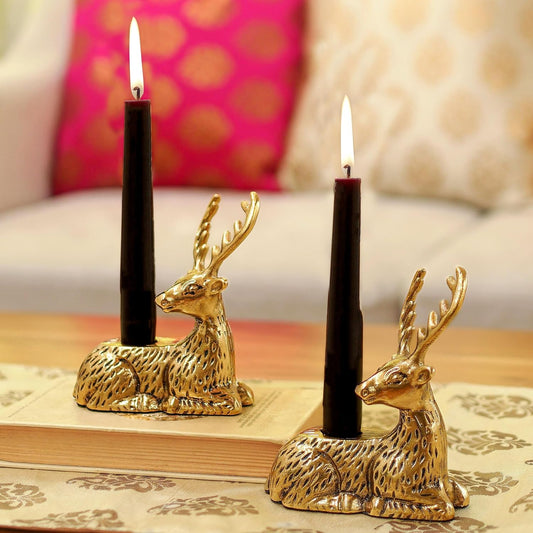 Antique Gold Reindeer Figurine Candle Holder Set of 2 | Decorative Stag Home Decor Gift for Diwali, Wedding & Housewarming