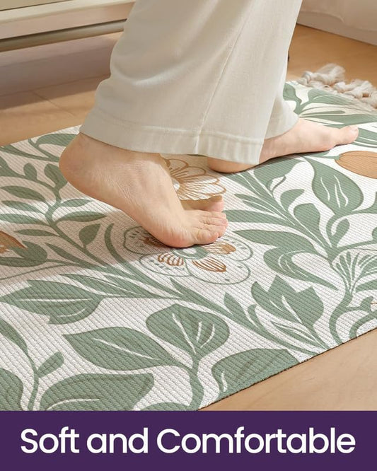 Farmhouse Botanical Printed Hand Woven 100% Cotton Washable Bedside Runner, 2x5 Ft | Living Room, Bedroom Rug