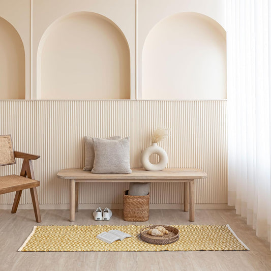 Modern Hand Woven 100% Cotton Washable Bedside Runner Rug 2x5 Feet | Living Room Bedroom Kitchen Carpet Floor Mat