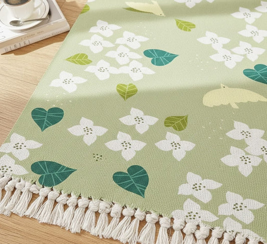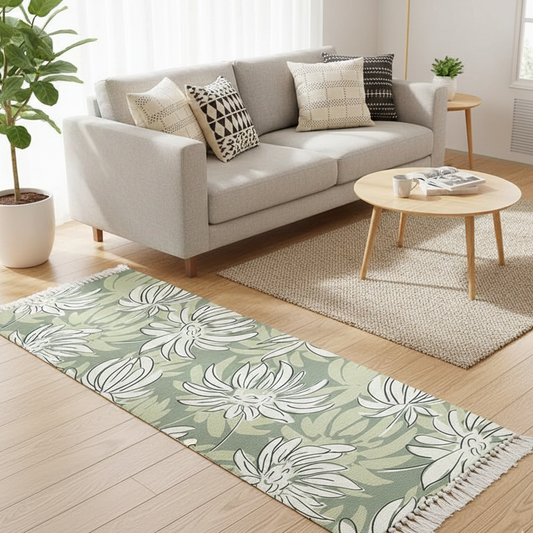 Modern Botanical Hand Woven Cotton Washable Bedside Runner Rug 2x5 Feet | Living Room, Bedroom, Kitchen Carpet