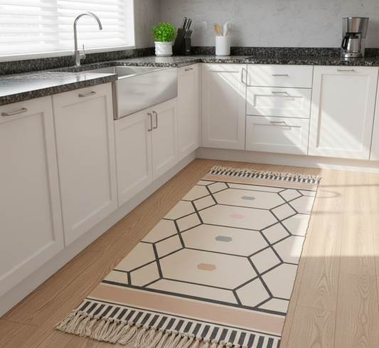Modern Printed Hand Woven 100% Cotton Washable 2x5 ft Bedside Runner | Living Room, Bedroom, Kitchen Carpet Rug