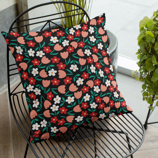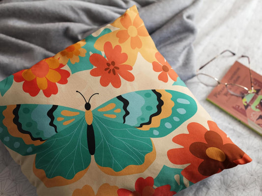 Retro Bloom Digital Print Velvet Cushion Covers 18x18 inch (Pack of 2) | Decorative Throw Pillow for Sofa, Home Decor