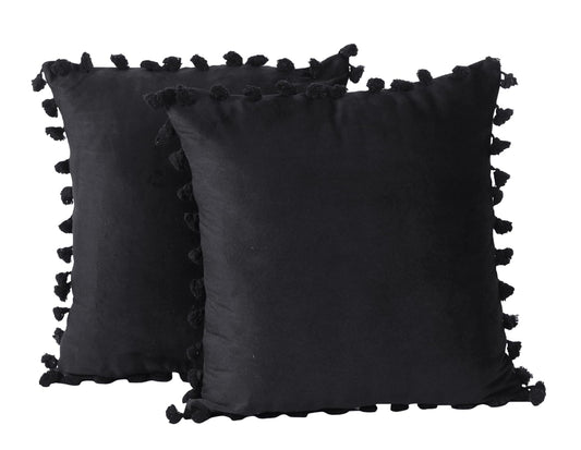 Umi Black Velvet Tassel Fringe Throw Pillow Covers 12x12 Inch (2 Pc) | Decorative Cushion for Sofa, Home Décor