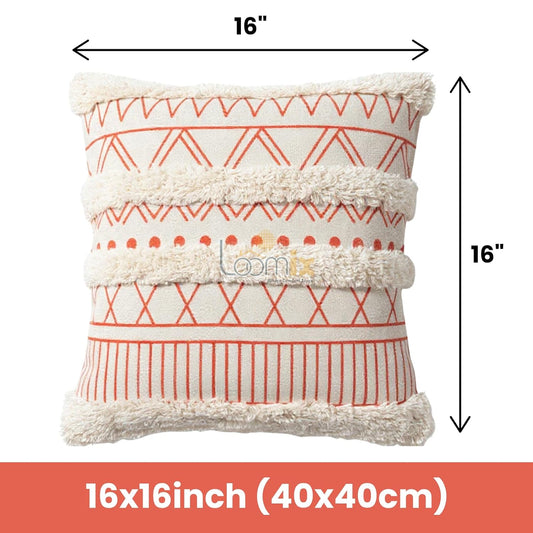Modern Boho Tufted Geometric Pom Poms Throw Cushion Covers 16x16 Inch 1 Piece | Decorative Pillow Sofa Decor