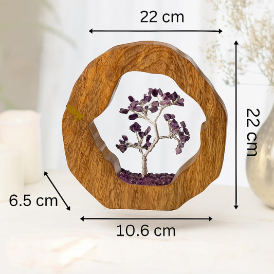 Spiritual Amethyst Crystal Tree in Wooden Ring for Chakra Healing & Feng Shui | Gemstone Bonsai Showpiece 17cm