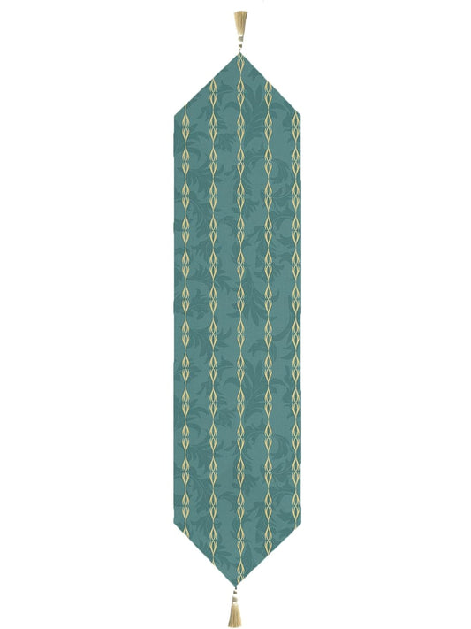 Azure Floral Printed Poly Cotton Table Runner & Bed Runner (13x60 Inch) with Tassel | Modern Home Decor, Dining, Bedroom, Washable