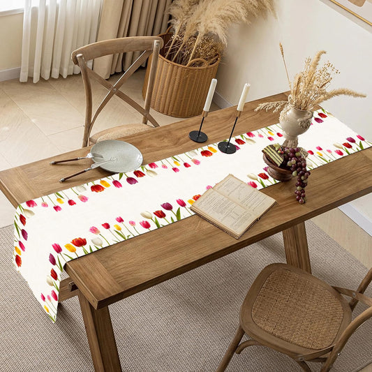 Premium Elegant Blooming Tulip Table Runner – Soft European Fabric, Machine Washable (13x72 Inch) | Dining Table Decor, Kitchen Linen