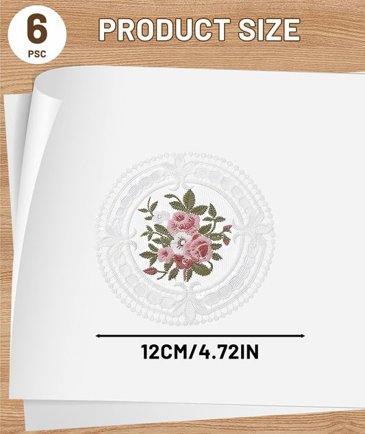 White Vintage Embroidered Coasters Set of 6, Round | Elegant Dining Table Mats, Tea Cup Stands, Home Decor Gift