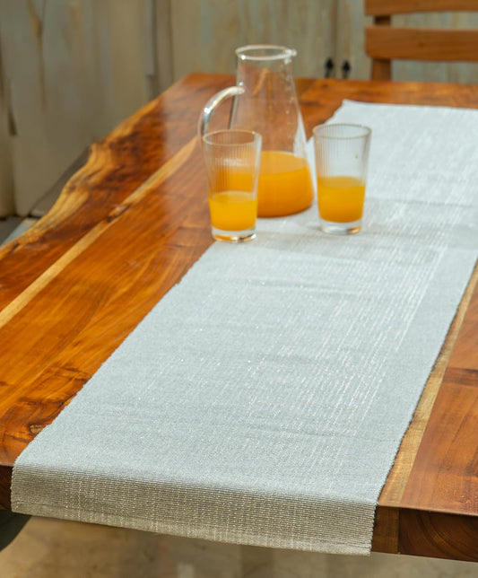 Grey-Silver Ribbed Cotton Weave Glitter Dining Table Runner 63x14 inch | Modern Festive Washable Table Decor 4-6 Seater