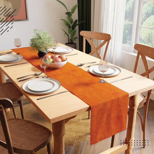 Luxurious Orange Chenille Dining Table Runner 32x150 cm for 4-6 Seater | Machine Washable Home Decor