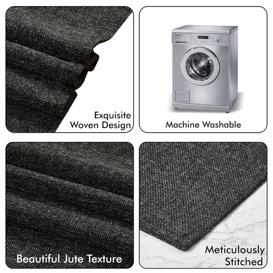 Jute Protective Washable Dining Table Runner (12 X 60 Inches) | Black Kitchen Linen Home Decor