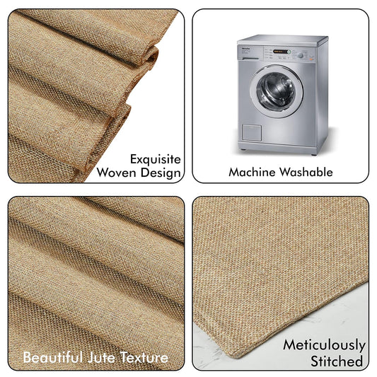 Beige Jute Dining Table Runner, 12x60 Inch | Washable Kitchen Home Decor, Spill & Heat Protection