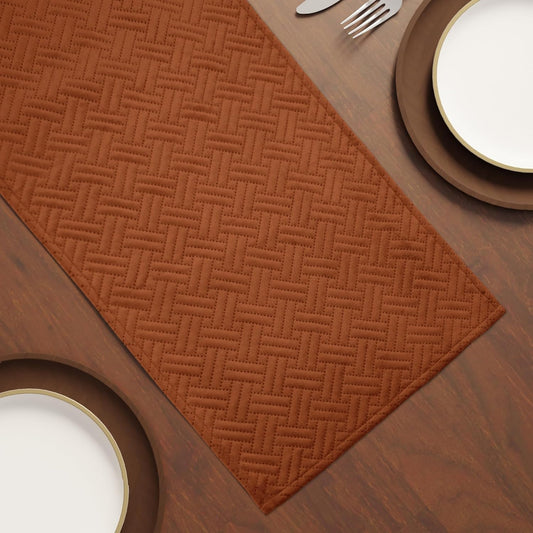 Brown Quilted Velvet Machine Washable Dining Table Runner 32x150 cm (4-6 Seater) | Table Decor, Home Decor