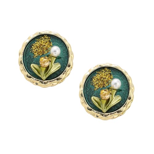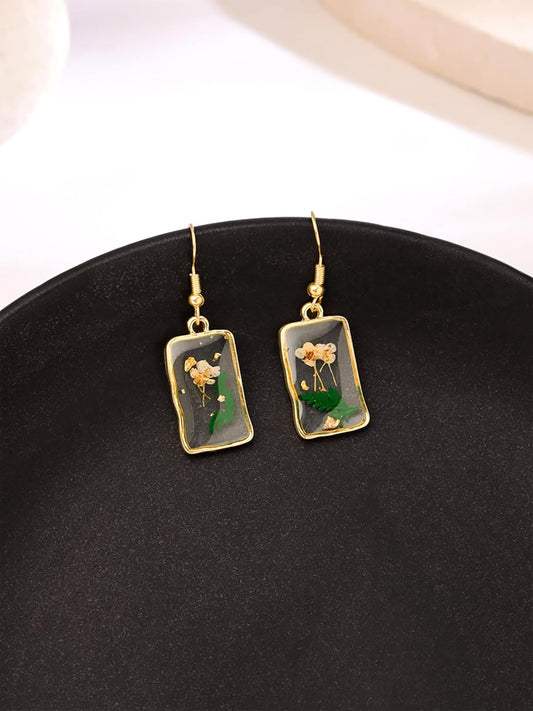 Yellow Flower Pressed Drop Earrings – Fashion Jewelry – Resin & Gold Finish – Single Pair