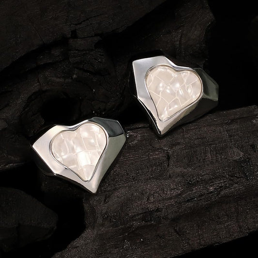 Chunky Heart Stud Earrings – Alloy – Chalk White Finish – Push Back Closure