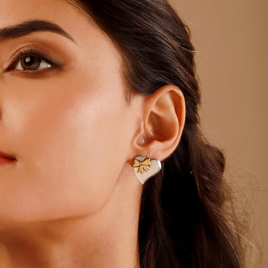 Sweetheart Ribbon Mismatched Earrings – Women's Fashion Earrings – Gold Plated – Designer Collection
