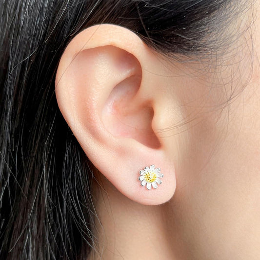 Flower Stud Earrings – 925 Sterling Silver – White Finish