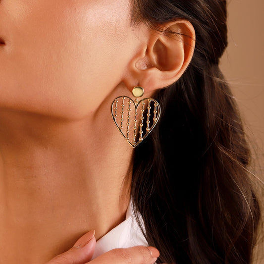 Golden Lattice Heart Earrings – Women's Jewellery – Gold Plated – Intricate Design