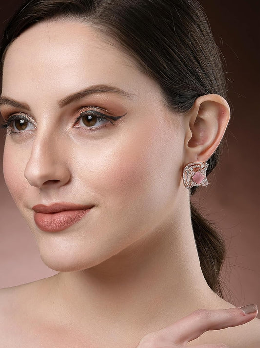 Rose Gold Plated Pink American Diamond Stud Earrings – Hypoallergenic Jewellery – Standard Pair