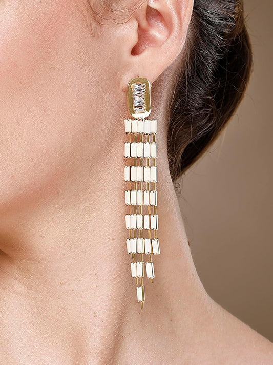 Contemporary White Drop Earrings – Women's Fashion Jewellery – Gold-Plated Finish – Retail Stock