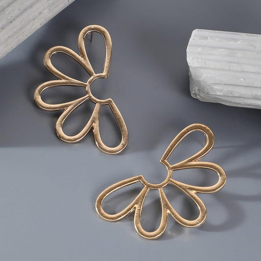 Semi-Flora Drop Earrings – Fashion Jewellery – Alloy, Gold Tone – Push Back Closure