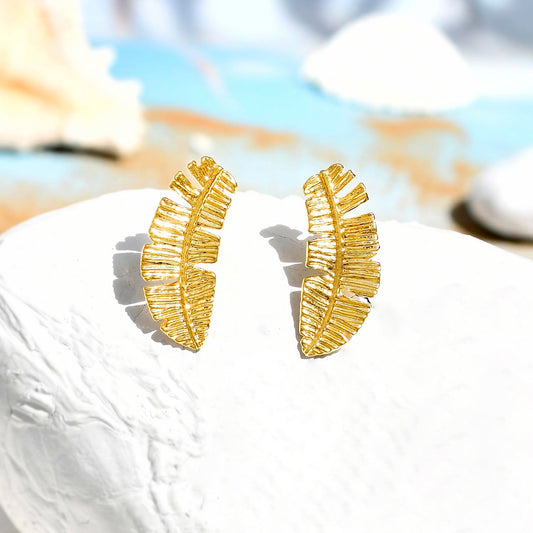 Hawaii Banana Leaf Ear Crawler Studs – Fashion Earrings – Handcrafted Brass Base – Skin-Safe Finish