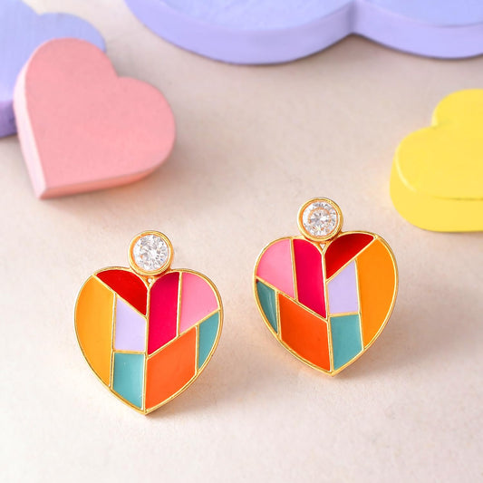 Mosaic Heart Drop Earrings – Handcrafted Brass Jewellery – Skin-Safe Finish – Retail Pair