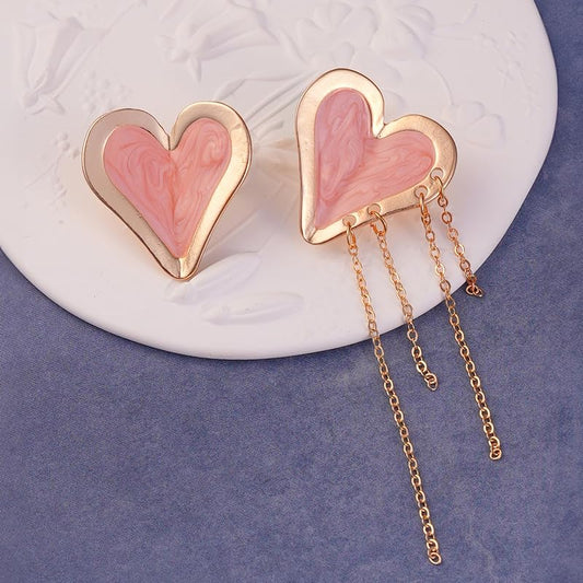 Heart-Fold Drop Earrings – Fashion Jewellery – Alloy – Blush Pink – Heart-Fold Design