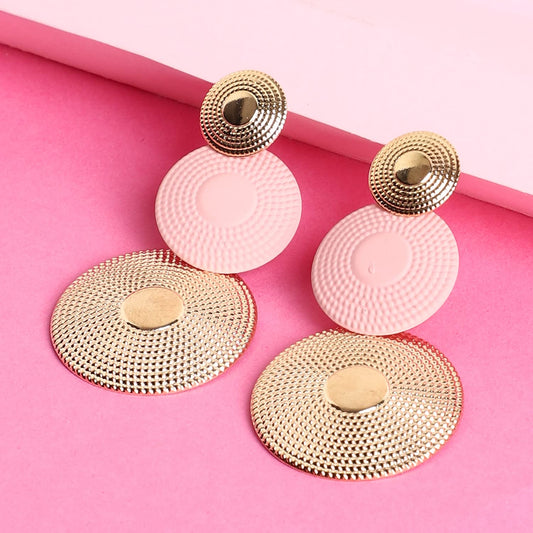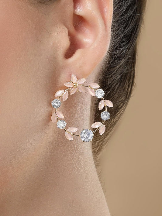 Round Dangler Earrings – Women's Fashion Jewellery – Gold Plated Pink American Diamond – Single Pair