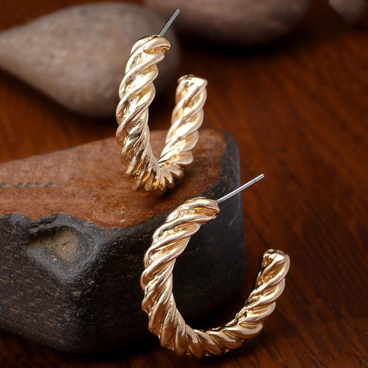 Twisted Huggie Earrings – Gold-Toned Fashion Jewellery – Durable Finish – Retail Stock