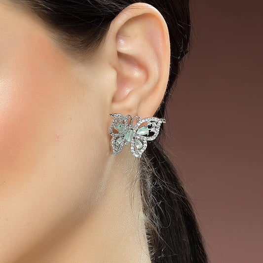 Butterfly Design American Diamond Earrings – Women's Fashion Jewellery – Silver Plated – Lime Green Accent