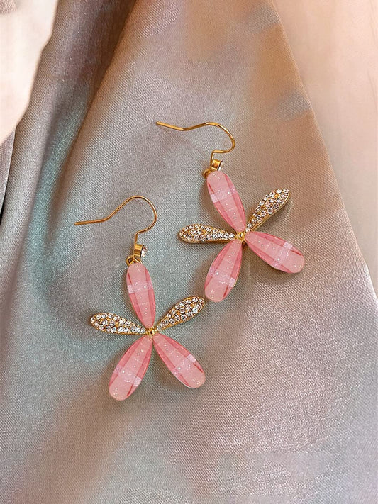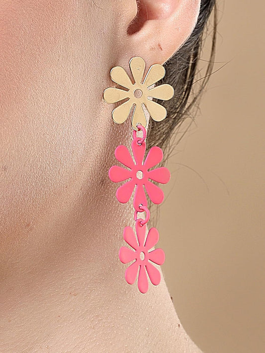 Floral Design Drop Earrings – Women's Fashion Jewellery – Pink & Gold Finish – Sold by Pair