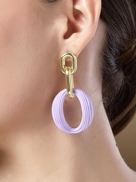 Matte Gold Lilac Linked Dangler Earrings – Fashion Jewellery – Durable Matte Finish – Retail Stock