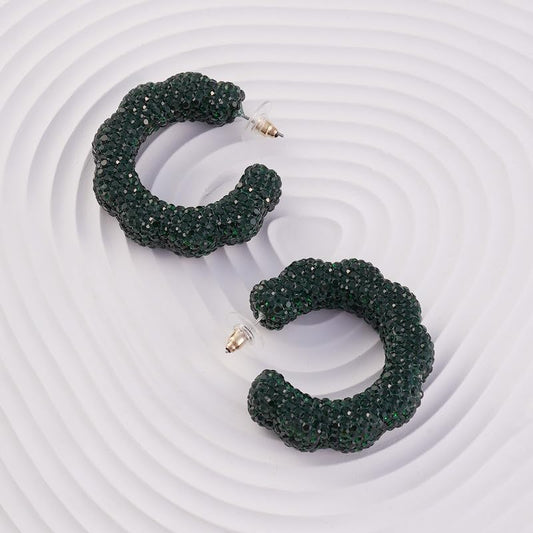 Emerald Green Hoop Earrings – Alloy Jewellery – Push Back Closure – Handcrafted