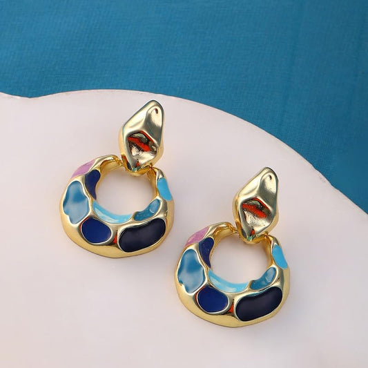 Metallic Drop Earrings – Fashion Jewellery – Alloy, Indigo Blue/Sky Blue – Push Back Closure