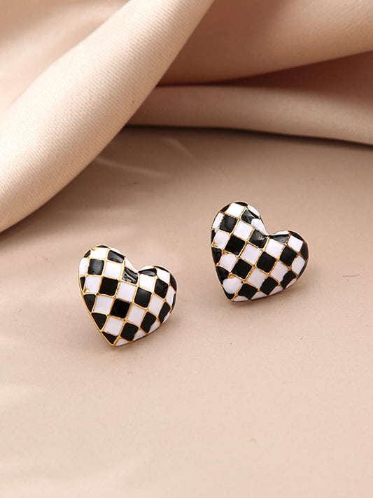 Heart Stud Earrings – Fashion Jewellery – Black & White Contrast Design – Pair