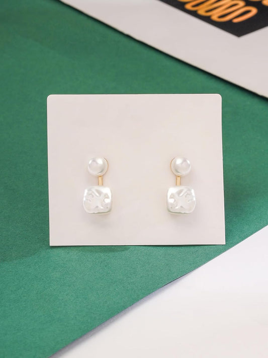 White Faux Pearl Drop Earrings – Fashion Jewellery – Gold Plated – Premium Finish Pair