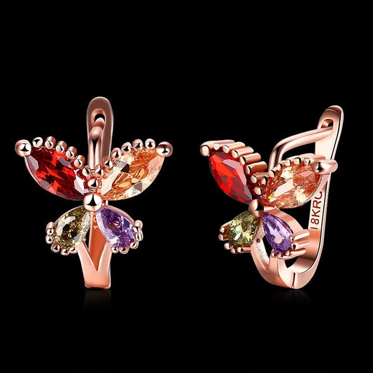 Flying Butterfly Earrings – Fashion Jewelry – 18K Rose Gold Plated – Swiss AAA Zircons