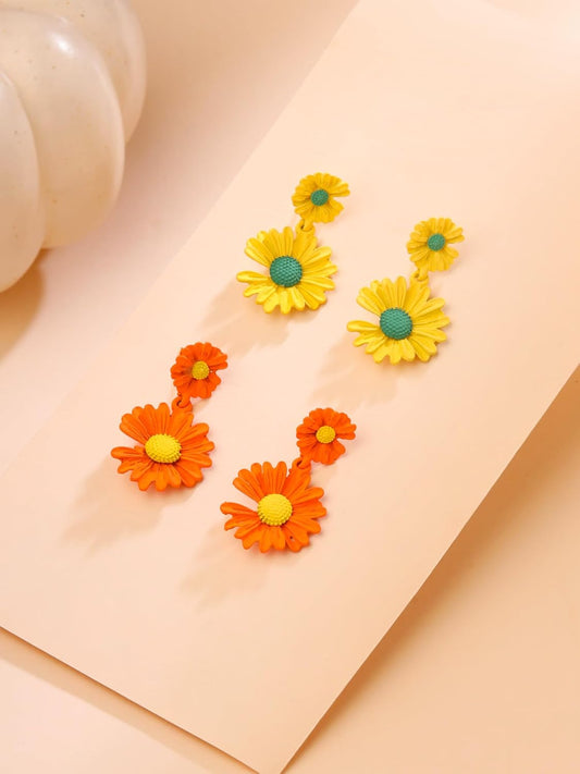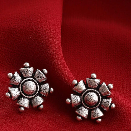 Floral Stud Earrings – Fashion Jewellery – Silver Brass, Anti-Tarnish Finish – Lightweight Design