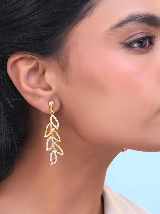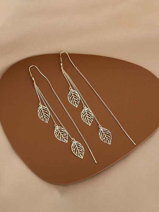 Chain Leaf Dangle Earrings – Fashion Jewellery – Gold Tone Finish – Delicate Leaf Motif