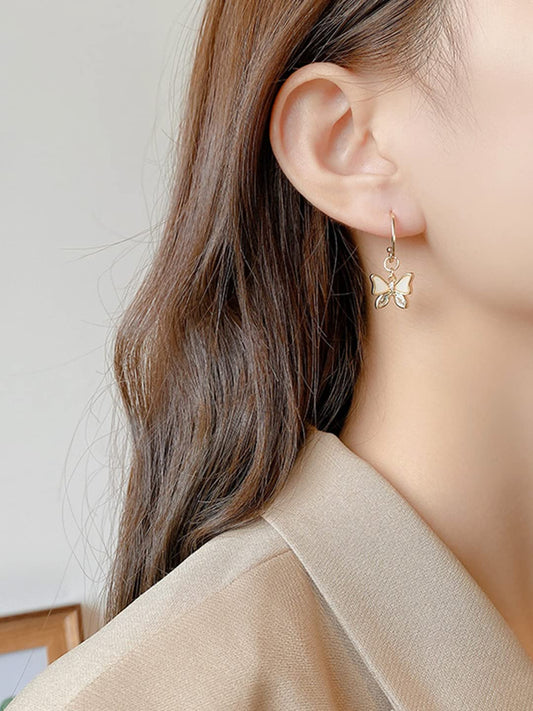 Gold Tone Butterfly Stud Drop Earrings – Fashion Jewellery – White Pearl Accent