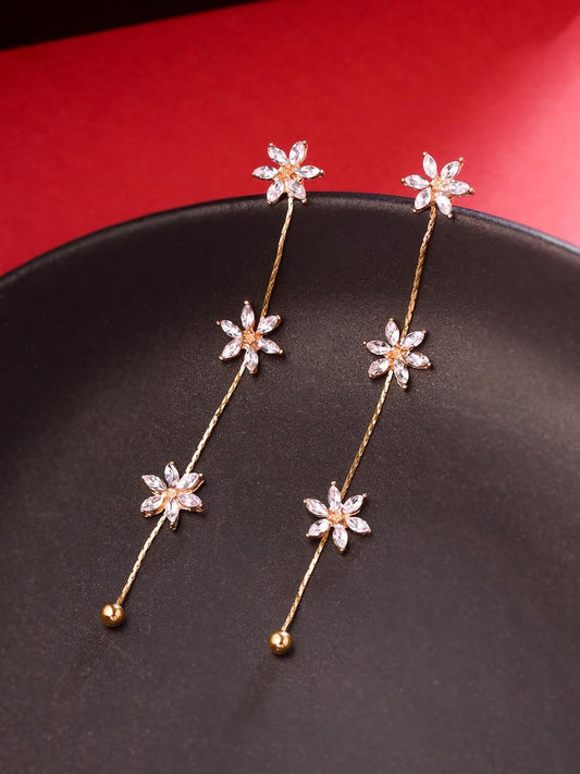Floral Designed Dangler Drop Earrings – Fashion Jewelry – Gold Plated Crystal – Retail Pack