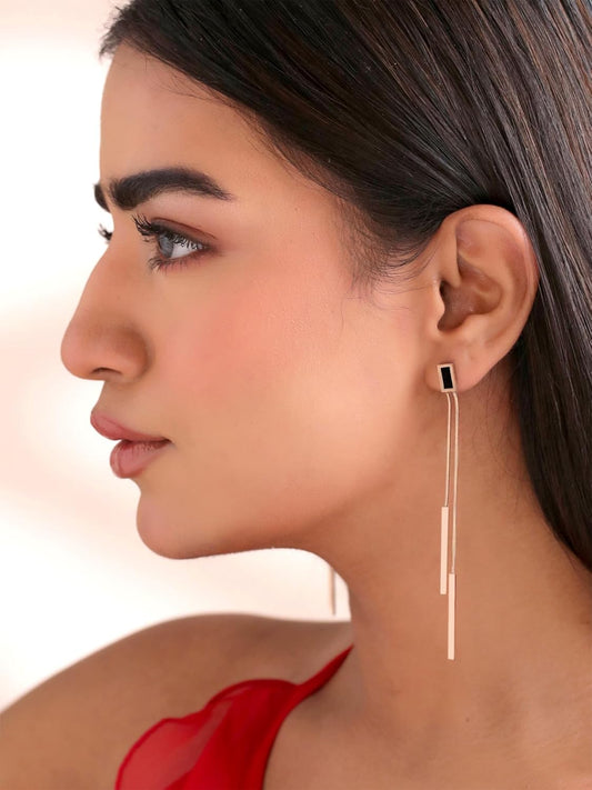 Rose Gold Danglers Earrings – Fashion Jewellery – Hypoallergenic Stainless Steel – Long Chain