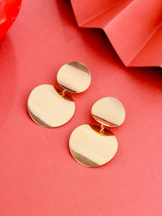 Gold Plated Circle Drop Earrings – Western Style Fashion Jewelry – Lightweight Alloy – Pair