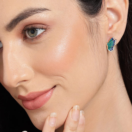 Enamel Butterfly Stud Earrings – Women's Fashion Jewellery – Gold Plated, Crystal Stones