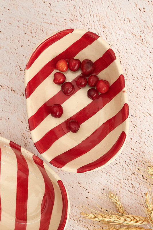 Vintage Red Stripe Ceramic Bowl – Handpainted Serving Bowl – Durable Ceramic – 300ml Capacity