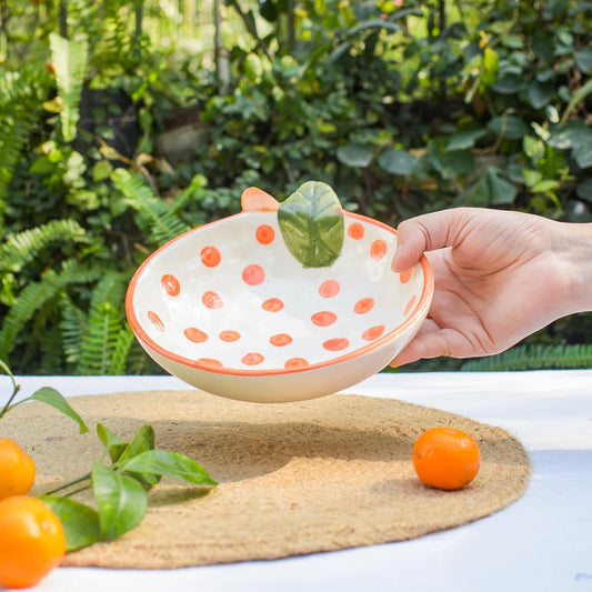 Orange Polka Heart Pattern Bowl – Artisanal Ceramic Serving Bowl – Dishwasher & Microwave Safe