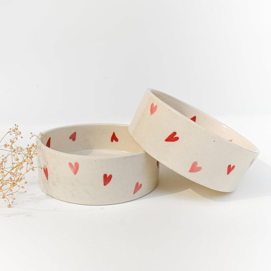 Twin Heart Ceramic Bowl – Dishwasher Microwave Safe – Patterned Dessert & Breakfast Tableware – 300ml